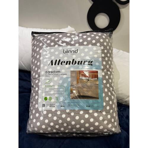 O Edredom com detalhe Poá Altenburg da Coleção Blend Confort Duo, Une o conforto do plush com o toque da Sherpa que imita toque de pele de coelho, possui um toque extremamente confortável, trazendo alto acabamento e conforto térmico, Composto por:1 Edredom Casal Altenburg 2.40 x 2.20cm Especificações:Coleção: Blend Confort DuoTecido Superior: Plush Estampado Poá 100% PoliésterTecido Inferior: Sherpa Mellow com toque que imita pele de coelho;Enchimento: Thermobonder com 120 g/m²Forma bolinhas: NãoDesbota: NãoToque: Aconchegante e macio Porta Travesseiros não acompanham o produto; Medidas:Largura: 2.40 mComprimento: 2.20 m Ean: 7909202810703