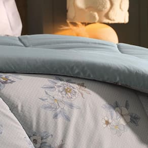 Romântica e delicada, a estampa Amorata combina ramos florais em tons suaves com um fundo azul claro texturizado, criando uma composição leve e encantadora. As flores em nuances de branco, bege e azul acinzentado trazem frescor e sofisticação à decoração, sendo ideais para ambientes que buscam um toque feminino, elegante e atemporal.