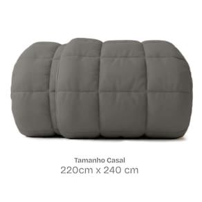 O enchimento de 200g/m² deixa a cama volumosa, imponente e sofisticada. Seu bordado com enchimento independente mantem as fibras no lugar, evitando deformacoes e prolongando a vida util, mesmo depois de muitas lavagens.