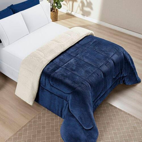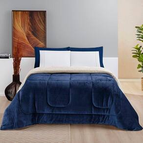 Edredom Casal Padrão Coberdrom Sherpa/Mantinha Everest 1 Peça - Marinho - Única