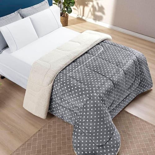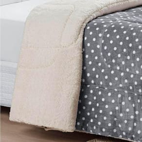 Edredom Casal Padrão Coberdrom Sherpa/mantinha Petit Poa 1 Peça - Cinza Conteúdo Embalagem: 01 - Coberdrom Casal ;Dupla Face 2,40m x 2,10m ; Composição: Tecido: 100% Poliéster Enchimento: 100% Poliéster ; Imagens Ilustrativas. Apenas itens descritos acima, compõem o produto. Demais itens podem ser adquiridos separadamente. Atenção: Certifique-se que as medidas do produto atende as dimensões da cama a qual será utilizada.