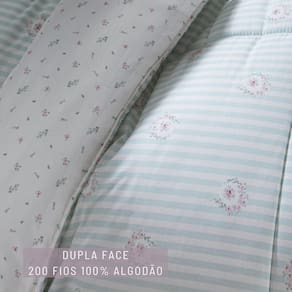 Aconchegue-se com o edredom Kacyumara Pivone, confeccionado em 200 fios 100% algodão egípcio, que proporciona maciez e conforto superiores. Seu enchimento leve e térmico garante o aquecimento ideal, sem excesso de peso, para noites tranquilas e relaxantes. A estampa Pivone da linha vintage da marca kacyumara, sobre listras, adiciona um toque de romantismo e movimento visual, tornando sua cama o centro das atenções.
