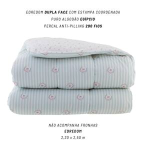 Aconchegue-se com o edredom Kacyumara Pivone, confeccionado em 200 fios 100% algodão egípcio, que proporciona maciez e conforto superiores. Seu enchimento leve e térmico garante o aquecimento ideal, sem excesso de peso, para noites tranquilas e relaxantes. A estampa Pivone da linha vintage da marca kacyumara, sobre listras, adiciona um toque de romantismo e movimento visual, tornando sua cama o centro das atenções.