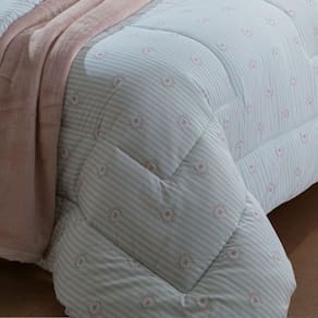 Aconchegue-se com o edredom Kacyumara Pivone, confeccionado em 200 fios 100% algodão egípcio, que proporciona maciez e conforto superiores. Seu enchimento leve e térmico garante o aquecimento ideal, sem excesso de peso, para noites tranquilas e relaxantes. A estampa Pivone da linha vintage da marca kacyumara, sobre listras, adiciona um toque de romantismo e movimento visual, tornando sua cama o centro das atenções.