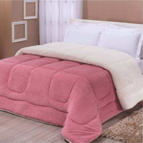 Edredom Coberdrom Pryme Solteiro Sherpa e Manta - Rosa