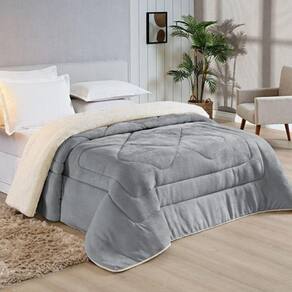 Edredom Coberdrom Sherpa/manta Queen Conforto 01 Peça Cor:cinza - Única