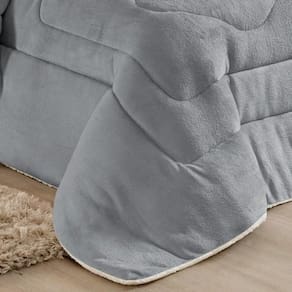 Edredom Coberdrom Sherpa/manta Queen Conforto 01 Peça Cor:cinza