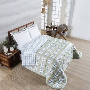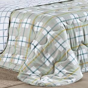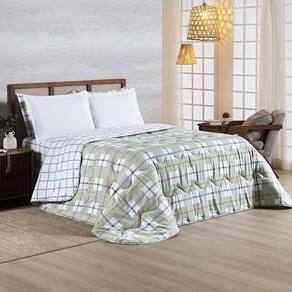 Edredom Cobertor Belle Queen 400 Fios Dupla Face Estampado Grid Xadrez Verde