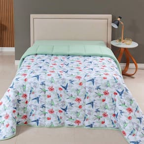 Edredom Cobertor Casa Scarpa Sonnet Queen Malha Estampada Dupla Face Algodão - Beija Flor - Verde
