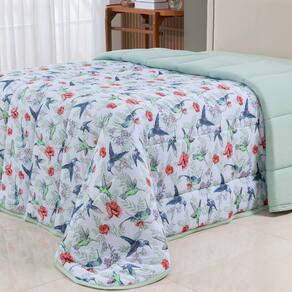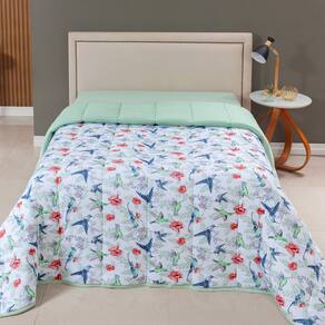 Edredom Cobertor Sonnet Queen Malha Estampada Dupla Face 100% Algodão - Beija Flor - Verde - Única