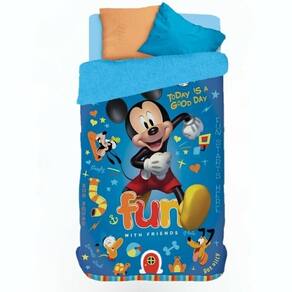 Edredom com Sherpa Solteiro Estampado Mickey 1,50 m x 2,20m O edredom Sherpa Solteiro Estampado Mickey 150x220 cm da Lepper é perfeito para deixar o quarto mais acolhedor, divertido e cheio de personalidade. Com a estampa clássica do Mickey Mouse, ele encanta crianças, adolescentes e até adultos fãs do personagem. Confeccionado com poliéster de alta qualidade, possui um lado com toque aveludado e o outro com forro sherpa extremamente macio e quentinho, ideal para as noites frias. Suas medidas são perfeitas para cama de solteiro: 150x220 cm. Além de ser leve e fácil de lavar, o edredom proporciona conforto térmico e resistência no uso diário. A combinação de estampa vibrante com o acabamento sherpa transforma o ambiente em um espaço ainda mais acolhedor e cheio de estilo. Destaques: