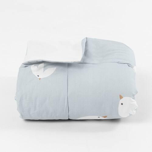 Proporcione noites de conforto e aconchego para o seu pequeno com o Edredom de Solteiro Pássaro Azul. Confeccionado em tecido 100% algodão de alta qualidade, este edredom é suave ao toque e garante uma sensação de bem-estar durante o sono. Sua dupla face oferece versatilidade, com um lado estampado com delicados pássaros azuis e o outro em branco liso, permitindo combinar facilmente com diferentes decorações.