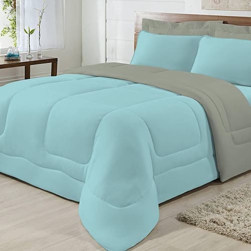 Marca: Enxovais Davy | Estampa: Não se Aplica | Medidas: 01 Edredom Casal Liso 2,00m x 2,20m | de Peças: Avulsa | Material: Agodão | Cor Predominante: Azul/ Cinza | Cama Indicada: Casal