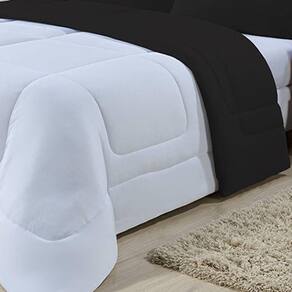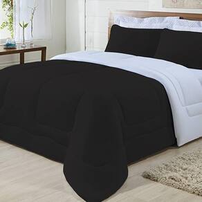 Edredom Dupla Face 100% Algodão Malha Casal Gran Moratta 01 Peça - Branco/ Preto