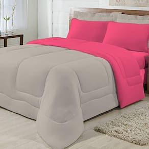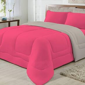Edredom Dupla Face 100% Algodão Malha Casal Gran Moratta 01 Peça - Caqui/ Pink