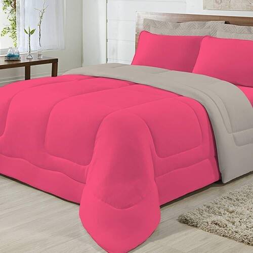 Edredom Dupla Face 100% Algodão Malha Casal Gran Moratta 01 Peça - Caqui- Pink - Rosa
