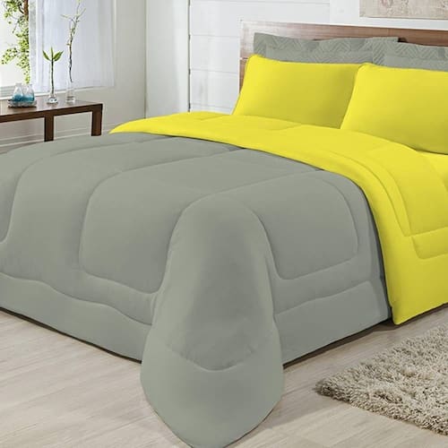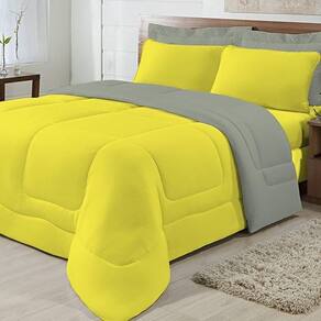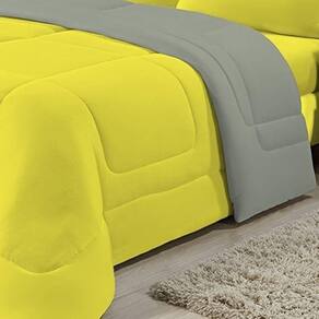 Edredom Dupla Face 100% Algodão Malha Casal Gran Moratta 01 Peça - Cinza/amarelo