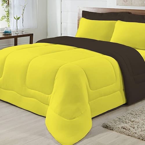 Marca: Enxovais Davy | Estampa: Não se Aplica | Medidas: 01 Edredom Casal Liso 2,00m x 2,20m | de Peças: Avulsa | Material: Agodão | Cor Predominante: Marrom/ Amarelo | Cama Indicada: Casal