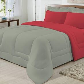 Edredom Dupla Face 100% Algodão Malha King Gran Moratta 01 Peça - Cinza/ Vemelho