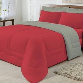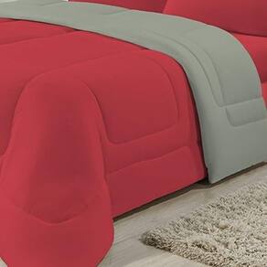 Edredom Dupla Face 100% Algodão Malha Solteiro Gran Moratta 01 Peça - Vermelho/ Cinza