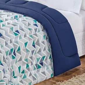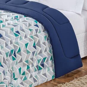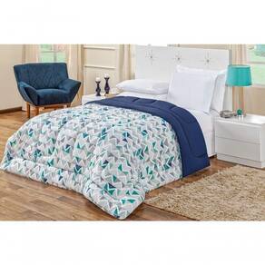 Edredom Dupla Face Super King Quality 01 Peça - Geométrico Azul