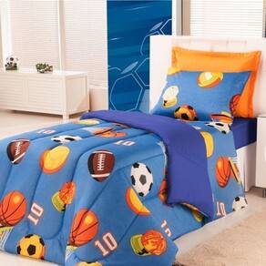 Edredom Estampado Infantil Kids Solteiro 01 Peça - Futebol Azul - Única