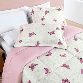 Edredom Júlia Casal King 03 Peças Tecido Dupla Face Microfibra 200 Fios Floral - Borboleta - 100% Poliéster