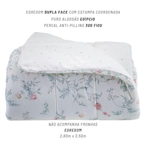 Feito em percal 300 fios de puro algodão egípcio, proporciona toque acetinado, aconchego único e durabilidade superior. A estampa romântica com padrões ascendentes adiciona movimento e profundidade à cama, valorizando cada detalhe do ambiente.