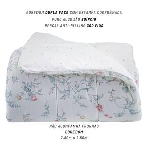 Feito em percal 300 fios de puro algodão egípcio, proporciona toque acetinado, aconchego único e durabilidade superior. A estampa romântica com padrões ascendentes adiciona movimento e profundidade à cama, valorizando cada detalhe do ambiente.