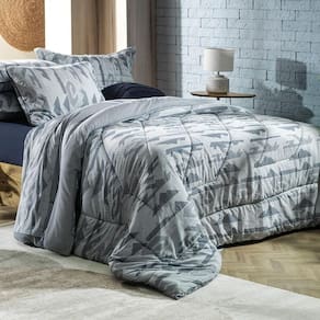 A estampa traz um design geométrico moderno em tons de azul, perfeita para quem busca sofisticação e personalidade na decoração do quarto. Produzida em puro algodão, garante conforto e maciez em todas as peças, oferecendo bem-estar em cada detalhe. O edredom conta com enchimento em poliéster thermobonder, proporcionando aconchego e durabilidade. Já o jogo de colcha apresenta acabamento em viés e porta-travesseiro com abas de 4cm, além de matelassado quadriculado que confere elegância extra. Os jogos de cama completos incluem lençol superior com dobra feita, lençol inferior com elástico de 40cm de altura para perfeito ajuste em colchões queen e king, e fronhas envelope com viés em rolotê. Também disponível na versão simples, com lençol de elástico e fronhas sem abas, essa linha une praticidade e estilo, permitindo composições versáteis e contemporâneas.