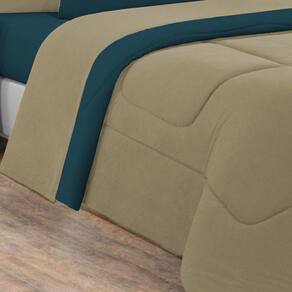 Edredom Malha 100% Algodão Gran Moratta 1 Peça King - Avelã/azul Petróleo