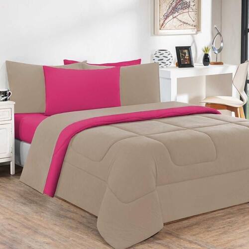 Marca: Enxovais Davy | Estampa: Não se Aplica | Medidas: 01 Edredom King Liso 2,50m x 2,90m | de Peças: Avulsa | Material: Agodão | Cor Predominante: Avelã/Pink | Cama Indicada: King