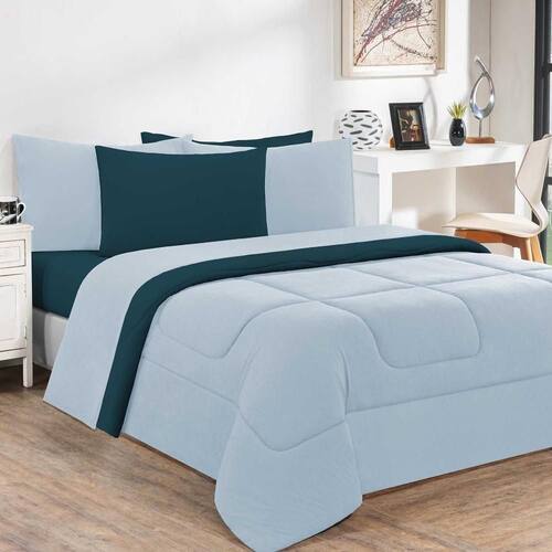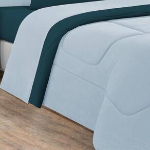 Marca: Enxovais Davy | Estampa: Não se Aplica | Medidas: 01 Edredom King Liso 2,50m x 2,90m | de Peças: Avulsa | Material: Agodão | Cor Predominante: Azul Bebê/Azul Petróleo | Cama Indicada: King