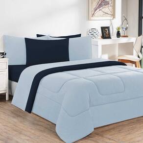 Edredom Malha 100% Algodão Gran Moratta 1 Peça Solteiro - Azul Bebê-azul Marinho