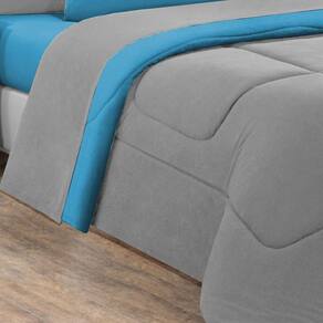 Edredom Malha 100% Algodão Gran Moratta 1 Peça Solteiro - Cinza/azul Turquesa