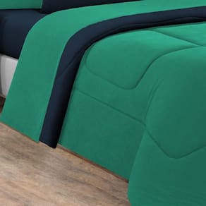 Edredom Malha 100% Algodão Gran Moratta 1 Peça Solteiro - Verde Jade/azul Marinho