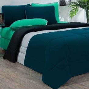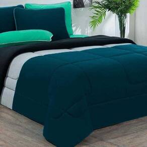 Marca: Enxovais Davy | Estampa: Não se Aplica | Medidas: 01 Edredom Casal Urbano 2,00m x 2,20m | de Peças: Avulsa | Material: Agodão | Cor Predominante: Azul Petroleo/Mescla/Preto | Cama Indicada: Casal