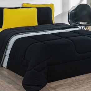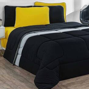 Marca: Enxovais Davy | Estampa: Não se Aplica | Medidas: Edredom Solteiro Urbano 1,60m x 2,40m | de Peças: Avulsa | Material: Agodão | Cor Predominante: Preto/Mescla/Preto | Cama Indicada: Solteiro