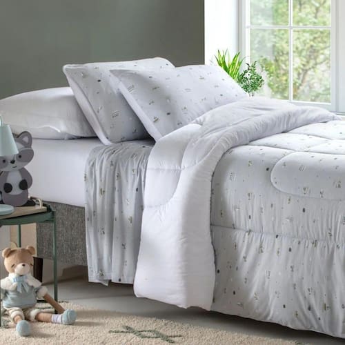 Para quem gosta de um edredom com toque extremamente suave e macio, esse Edredom de Malha da linha Sofee da Kacyumara é perfeito Produzido em malha 100% Algodão, e fio penteado, ele não amassa e não cria aquelas indesejáveis bolinhas. Seu enchimento é 100% poliéster, o que o torna um edredom leve e também quente para as noites mais frias. Além de ser produzido em Malha 100% Algodão, é também um produto com fibra natural, sendo Antialérgico. Suas estampas são neutras e delicadas, combinando com qualquer ambiente, possui toda a cartela de tamanhos, desde o Solteiro até o King. As estampas de solteiro são diferenciadas para meninos e meninas, personalizando o quarto das crianças. Nos tamanhos de casal, queen e king suas estampas são neutras para compor da melhor forma o quarto do casal.