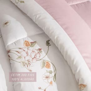 Produzido em 100% algodão com acabamento acetinado, o tecido tem toque sedoso e alta durabilidade. Seu enchimento em thermobonder 180g/m com ação antimicrobiana garante leveza, volume e proteção adicional, promovendo noites mais higiênicas e confortáveis.