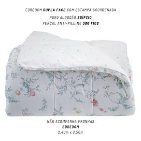 Feito em percal 300 fios de puro algodão egípcio, proporciona toque acetinado, aconchego único e durabilidade superior. A estampa romântica com padrões ascendentes adiciona movimento e profundidade à cama, valorizando cada detalhe do ambiente.