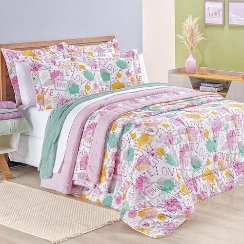 Edredom Queen Amore Estampado 200 Fios 100% Algodão 3 Peças - Única
