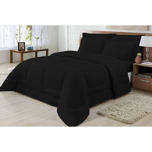 Edredom Queen Dupla Face Malha Antialérgica 100% ALG Preto Edredom Casal Queen Malha 100% algodão