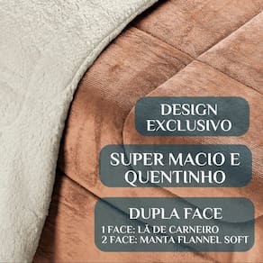 Composição: Face 1 coberta de Microfibra Soft Face 2 coberta de lã de Carneiro Enchimento manta 100% poliéster