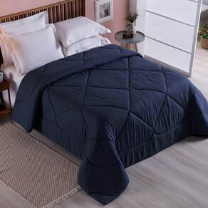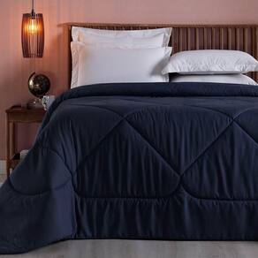 Edredom Queen Unique Dupla Face Micropercal 200 Fios Toque De Algodão 1 Peça - Azul Marinho