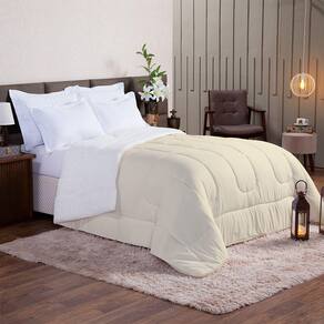 Especificações Técnicas: Modelo: Queen Tamanho da peça: 240x220cm Observação: Lado liso com Micropercal e outro Sherpa, composto por Fibra sintética que faz lembrar lã de carneiro Cuidados com seu Edredom: Não utilizar alvejante Não secar a máquina Secar à sombra Passar com ferro a baixa temperatura Não lavar a seco