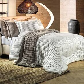 Aconchego com elegância em cada detalhe. O edredom Raya da coleção Blend Sense une conforto térmico e design sofisticado, ideal para os dias mais frios. Seu lado superior em poliéster com relevo em listras 135g/m confere textura e estilo, enquanto o lado inferior em PV Fleece garante toque suave e sensação de maciez prolongada. O enchimento em poliéster thermobonder 150g/m proporciona isolamento térmico eficiente, ideal para o inverno. Com fronhas combinando, a linha Raya uma composição harmoniosa, oferecendo uma experiência sensorial completa perfeita para transformar seu quarto em um espaço acolhedor e elegante. Disponível nas cores Raya Branco e Raya Porcelana, nos tamanhos Solteiro, Casal e Queen.