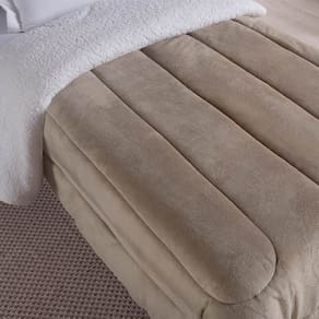Mantenha sua cama aconchegante e aquecida nas temperaturas mais baixas do ano com o Coberdrom Noruega. O coberdrom é dupla face, fabricado com manta fleece e a outra face com sherpa que imita lã de carneiro. Ambos os lados possuem toque extremamente macio e confortável. O coberdrom possui acabamento com desenho pantográfico costurado que dá um toque delicado ao produto e ainda faz com que seu coberdrom não tenha a manta danificada ou embole após as lavagens.