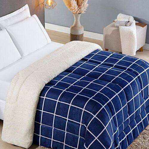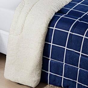 Edredom Solteiro Coberdrom Sherpa/Mantinha Austin 1 Peça - Marinho - Única