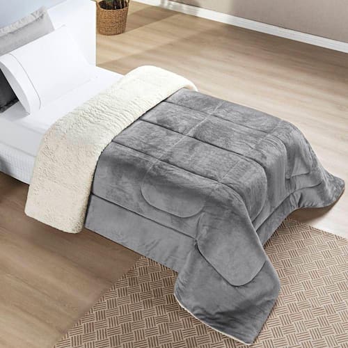Apresento a vocês nosso Coberdrom Everest. Dupla face, matelassado em manta siliconizada, um dos lados é produzido em Sherpa fofinha como novelo de lã de carneiro, e outro lado em mantinha flannel aveludada. Super quentinho e aconchegante, proporcionará uma bela noite de descanso.